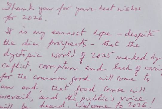 January 1, 2026 – my “Happy New Year” message on social media, and to family and friends: